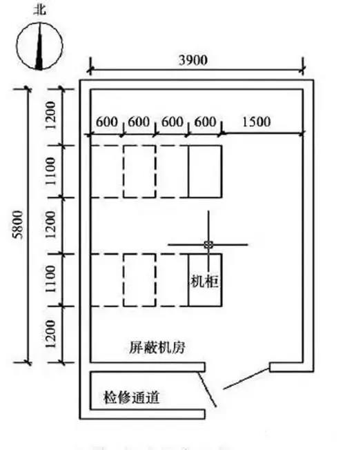 除此之外,還需要考慮預留施工防護空間,并盡量避免調(diào)整現(xiàn)有機房管路和屏蔽門體位置。以圖1為例,在同等條件下,應該優(yōu)先考慮將機房向東側(cè)和北側(cè)擴展。因為南側(cè)是機房屏蔽門體和檢修通道,向南擴展需要將其拆除后重新安裝,施工難度較大,特別是屏蔽門體本身是屏蔽機房最重要的防護部位,一旦重新安裝后屏蔽效果降低,會對機房整體屏蔽效能產(chǎn)生較大影響。如果向西側(cè)擴容,擬拆的墻體緊貼機柜,在實施過程中缺少施工作業(yè)面,不利于對現(xiàn)有設(shè)備的防護。因此,在制定擴容方案時需要綜合考慮各種因素,在滿足建設(shè)目標的前提下,盡可能減少投資,降低實施難度。