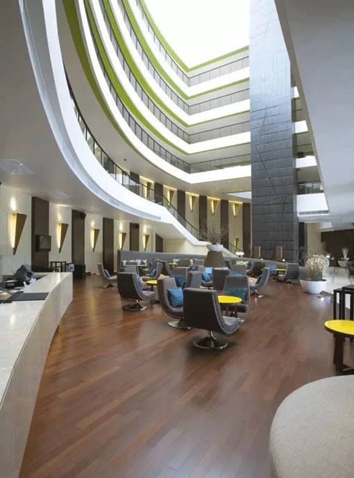 大廳空間要求寬敞明亮、色彩怡人,應保持充足的采光照明,并盡可能利用自然光,在大廳內引進綠色植物,并通過通透的外墻借室外園林景色,營造出讓病人可充分放松和消除緊張的感覺,指示標識應醒目,線路清晰易找,導醫、問詢安排在接近入口的合適位置,做到既不影響交通又使問詢方便。大廳應保持良好的空氣質量,對于全空調的大廳,裝修不得影響空調的氣流組織,墻、頂造型均應與空調消防等專業密切配合。
